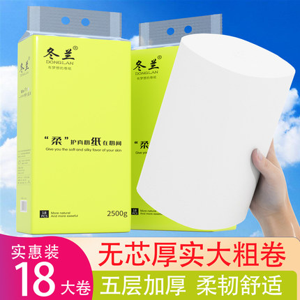 18卷卫生纸卷纸家用实惠装厕所专用无芯卷筒纸实心大粗卷卫生纸