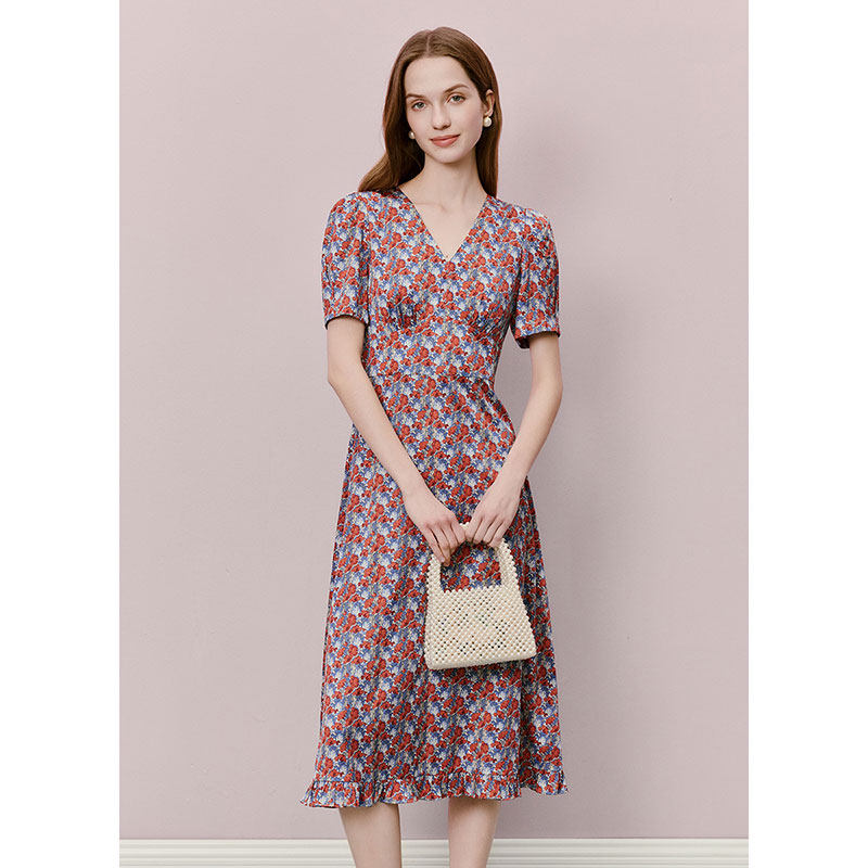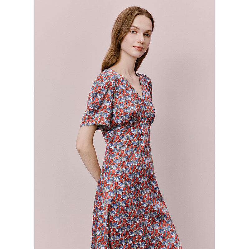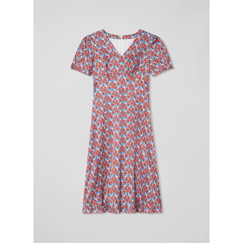 【朱珠同款】lkbennett红色连衣裙夏新款印花优雅气质真丝连衣裙