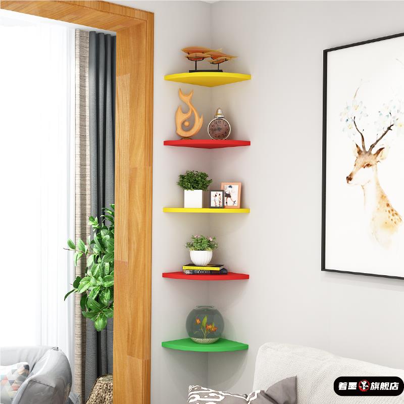 隔板简约加厚转角置物架墙面书架卧室壁挂免打孔厨房三角家用扇形