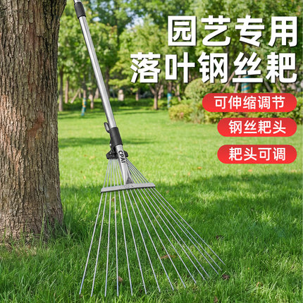 不锈钢耙子搂草扒子农用扫树叶神器耙齿钉耙伸缩扒子耙草园艺工具