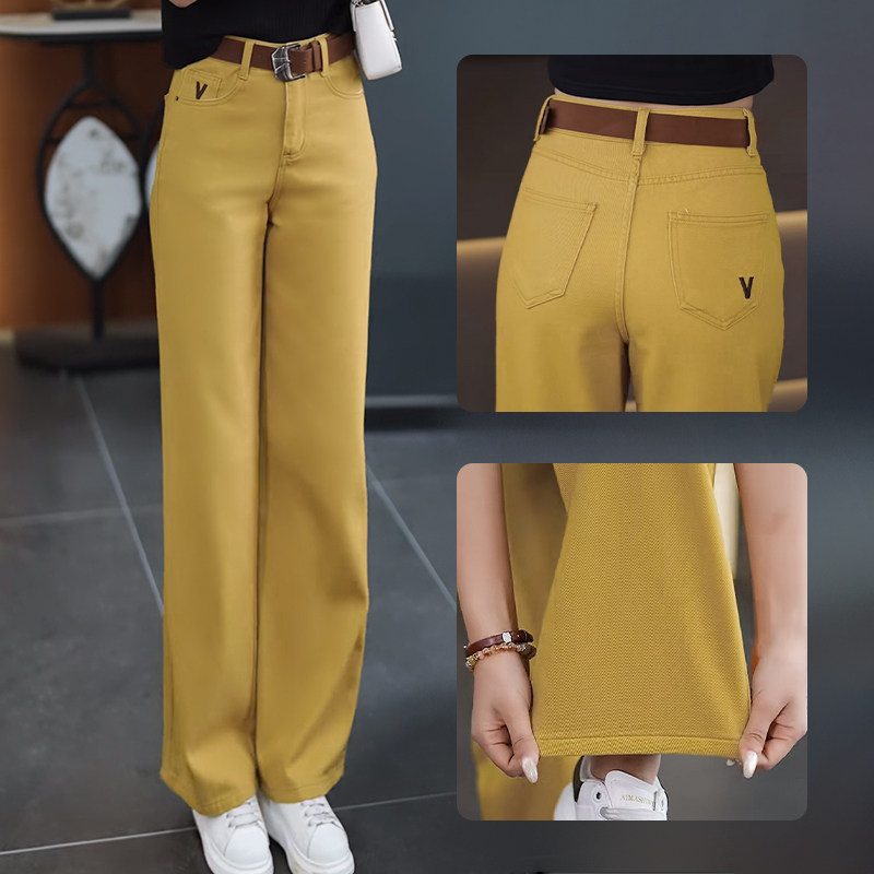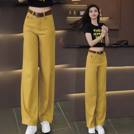 窄版阔腿裤女夏秋新款高腰姜黄色