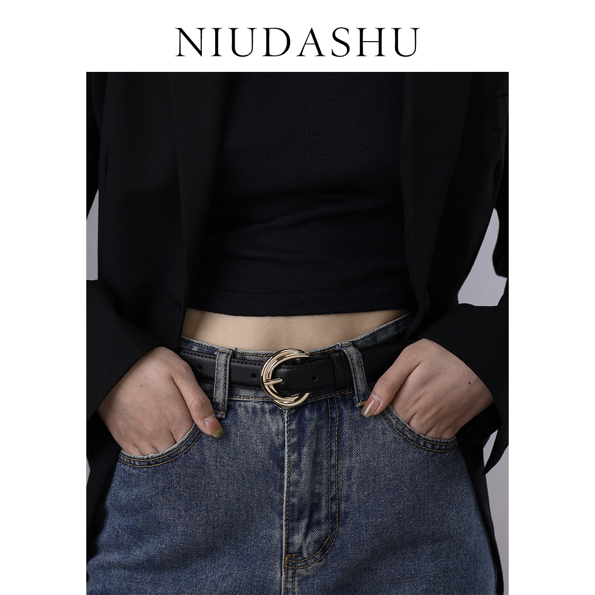 皮带女真皮装饰简约百搭金色针扣配牛仔裤牛皮腰带女黑韩版显瘦潮