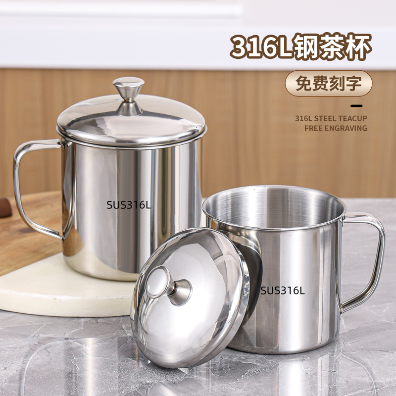 316不锈钢茶杯带盖食品级304杯子口杯家用怀旧老式茶缸大容量水杯