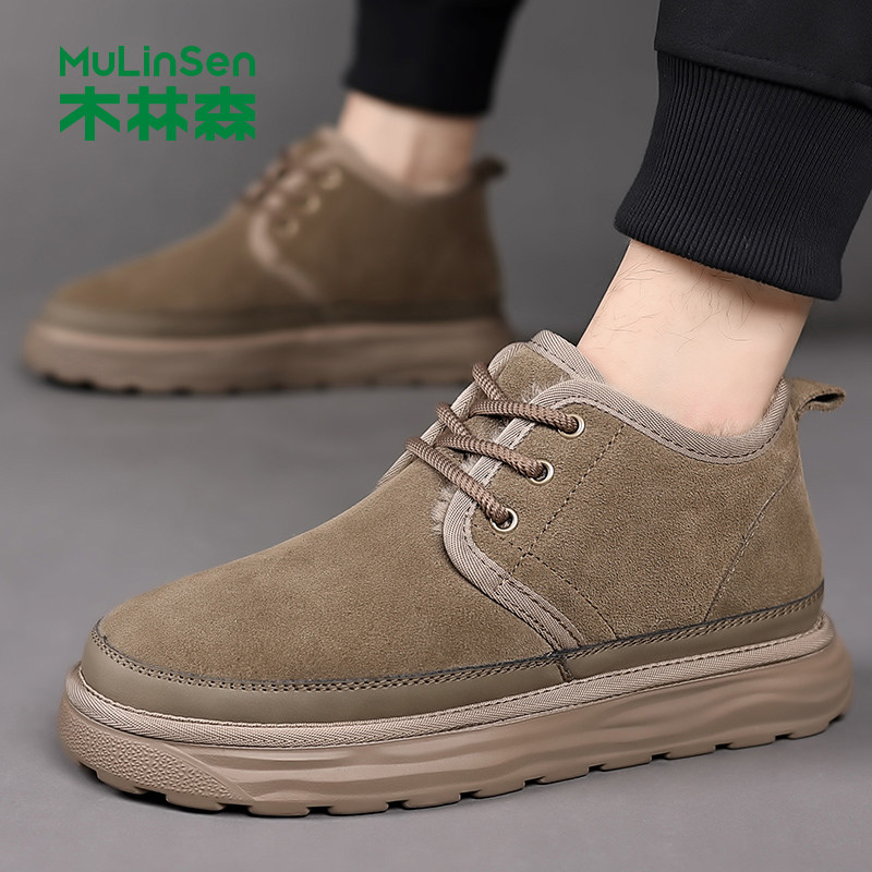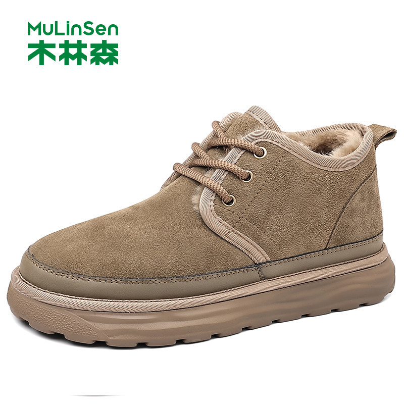 木林森雪地靴男款2025冬季真皮加绒羊毛高帮男鞋皮毛一体东北棉鞋