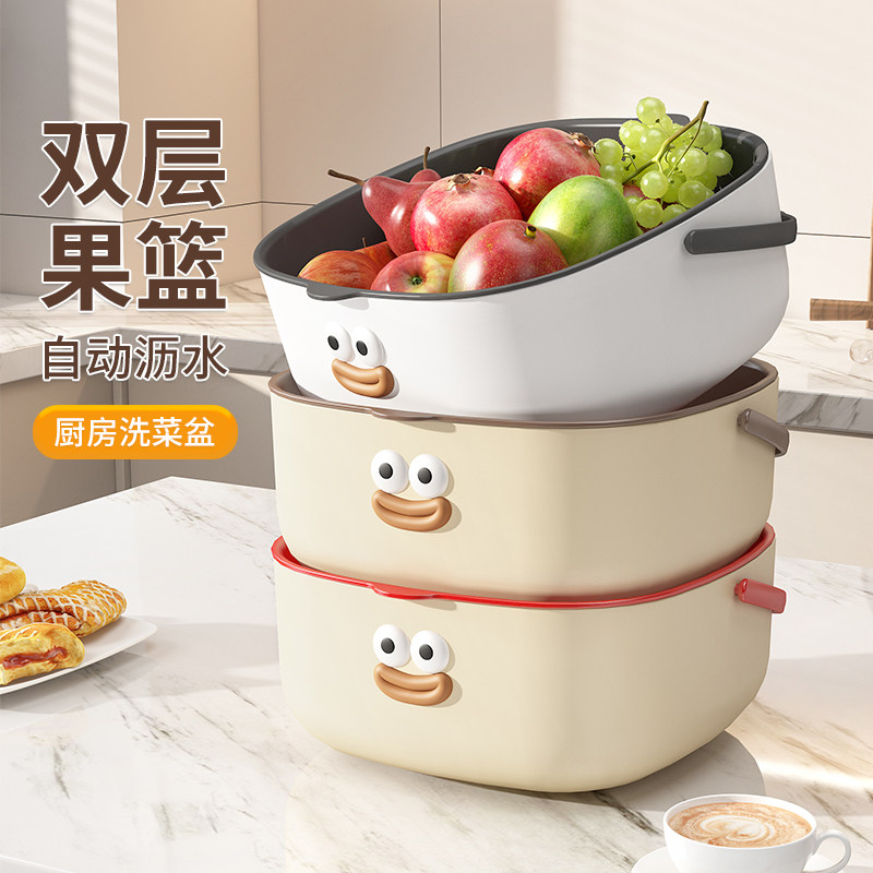 双层洗菜盆沥水篮家用客厅多功能水果盘新款厨房水果篮淘米洗菜盆