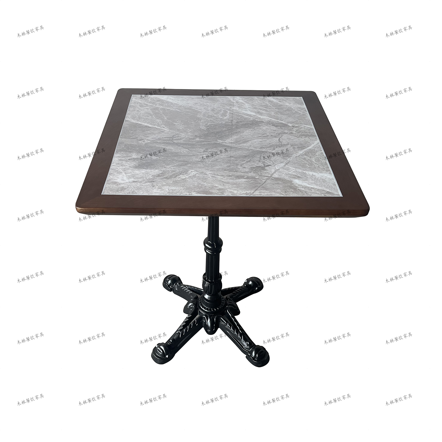 复古 实木岩板餐桌椅组合商用餐厅快餐店奶茶店面馆饭店桌子 定制
