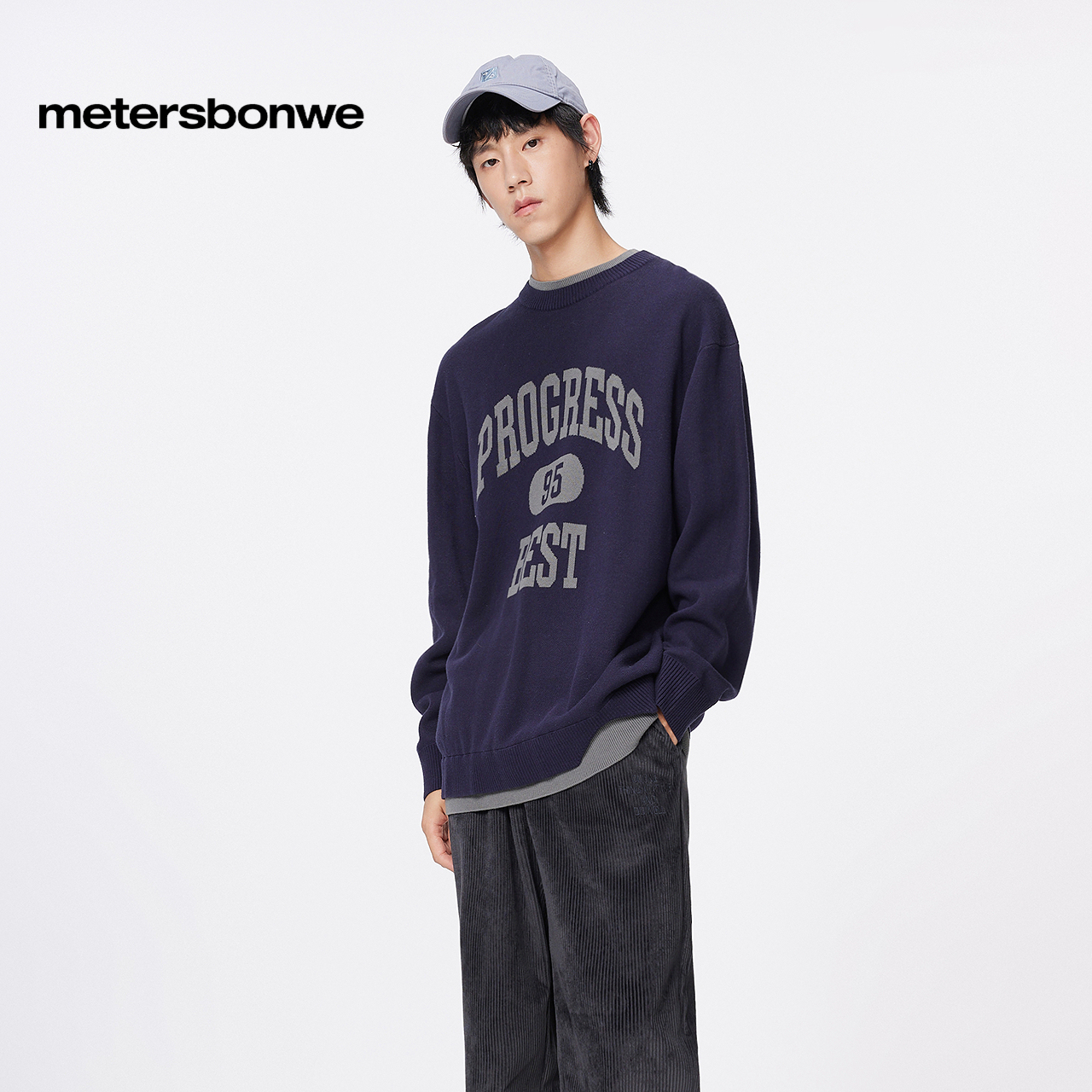 美特斯邦威毛衣男秋季新款宽松时尚字母logo潮流舒适套头男士上衣