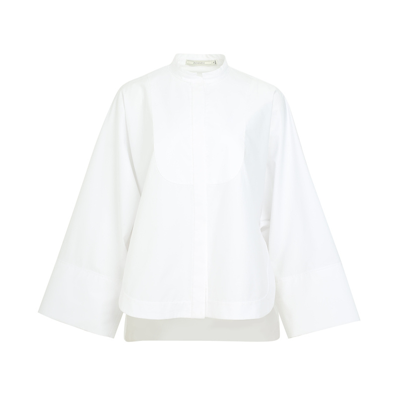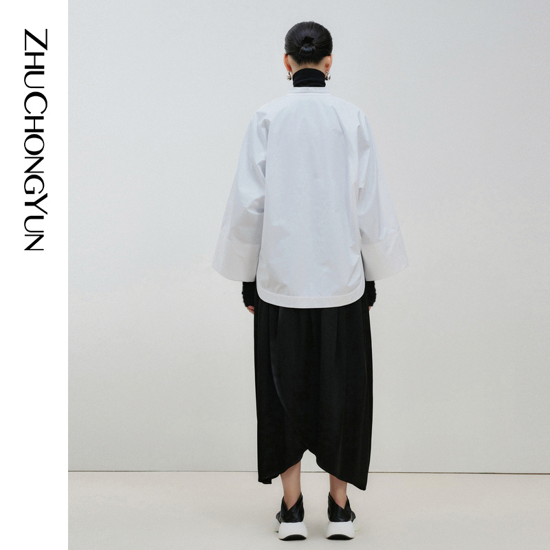ZHUCHONGYUN2025春新款时尚简约东方立领宽松直身白色衬衫上衣