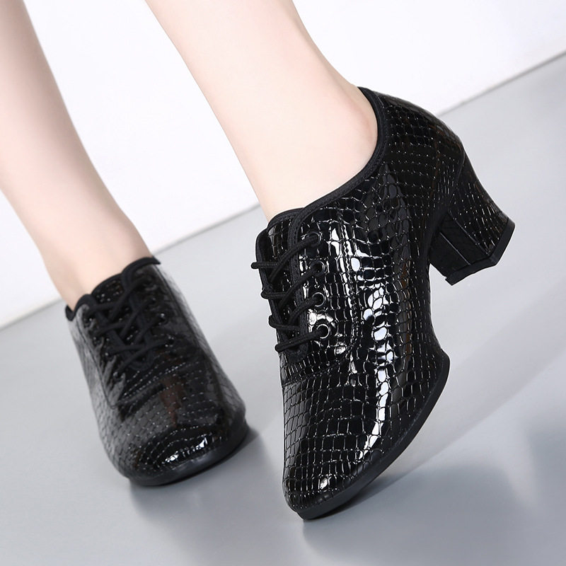 教师广场舞蹈鞋女软底真皮毛底跳舞鞋成人拉丁舞鞋广场舞鞋中跟