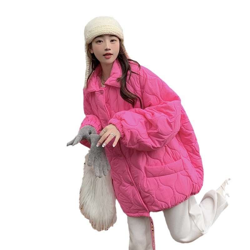 菱格棉服女新款韩版冬装复古大码外套面包服宽松内底羊羔毛女