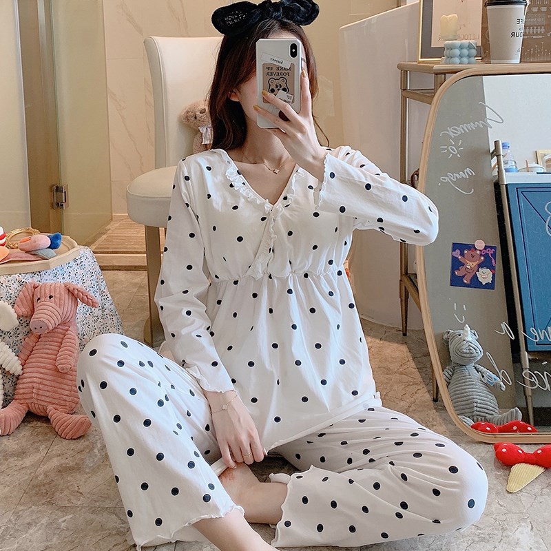 月子服夏季薄款纯棉产后春秋哺乳孕妇睡衣春夏款带胸垫产妇家居服
