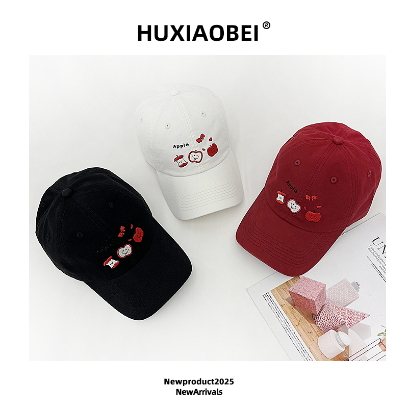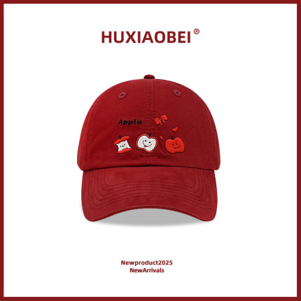 可爱红苹果刺绣鸭舌帽子女2025新款防晒遮阳学生百搭显脸小棒球帽