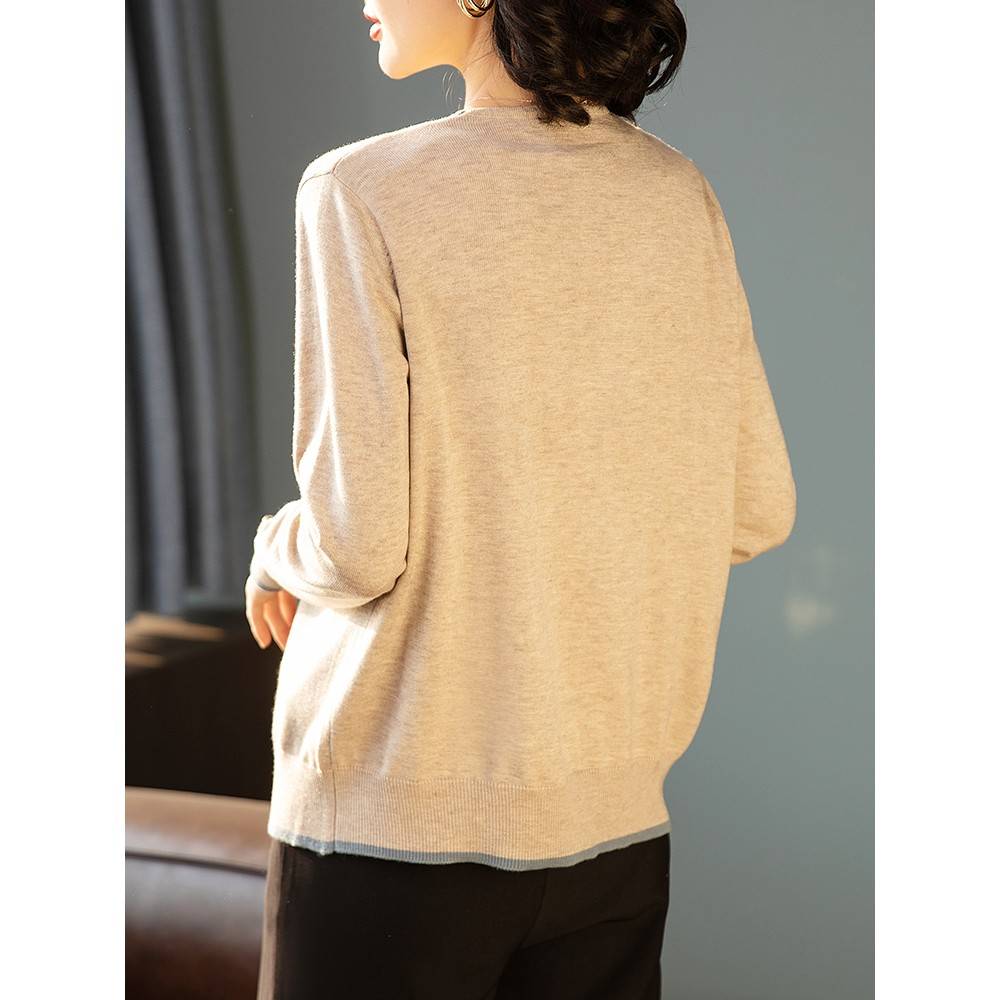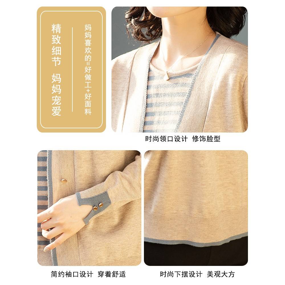 中老年女装春秋薄款毛衣外套针织开衫加肥加大码妈妈装两件套上衣