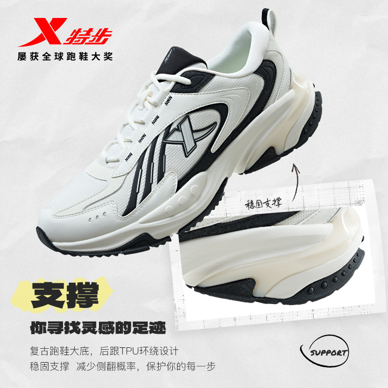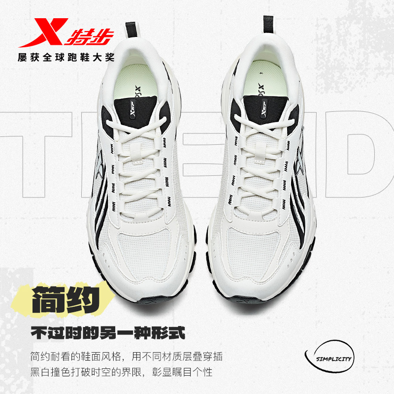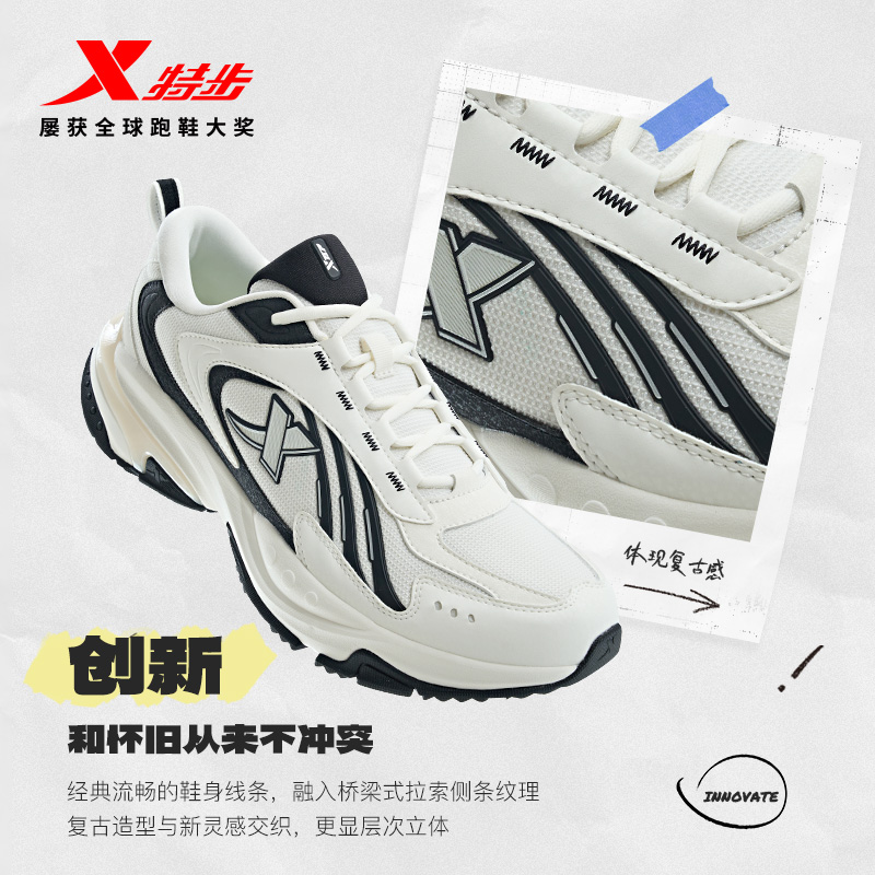 特步男鞋复古跑步鞋男鞋夏季网面透气运动鞋潮流休闲鞋情侣跑鞋