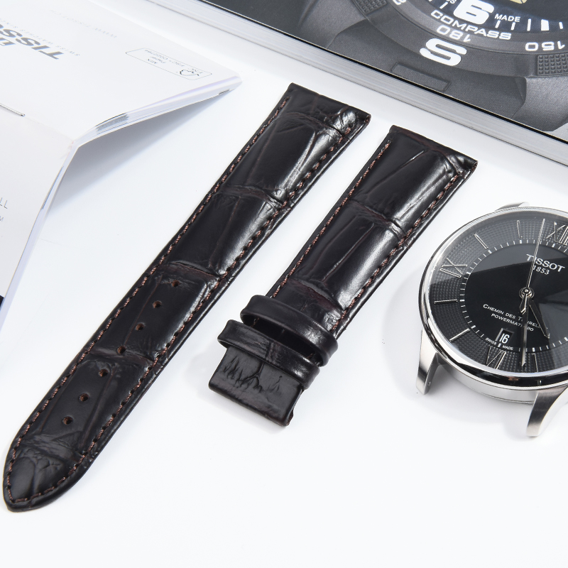 天梭表带真皮1853原装代用杜鲁尔T099手表带男女士真皮配件蝴蝶扣
