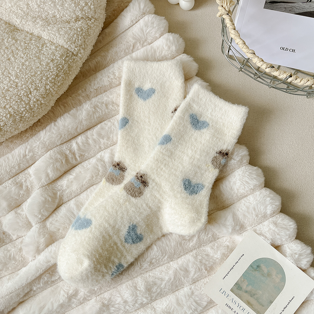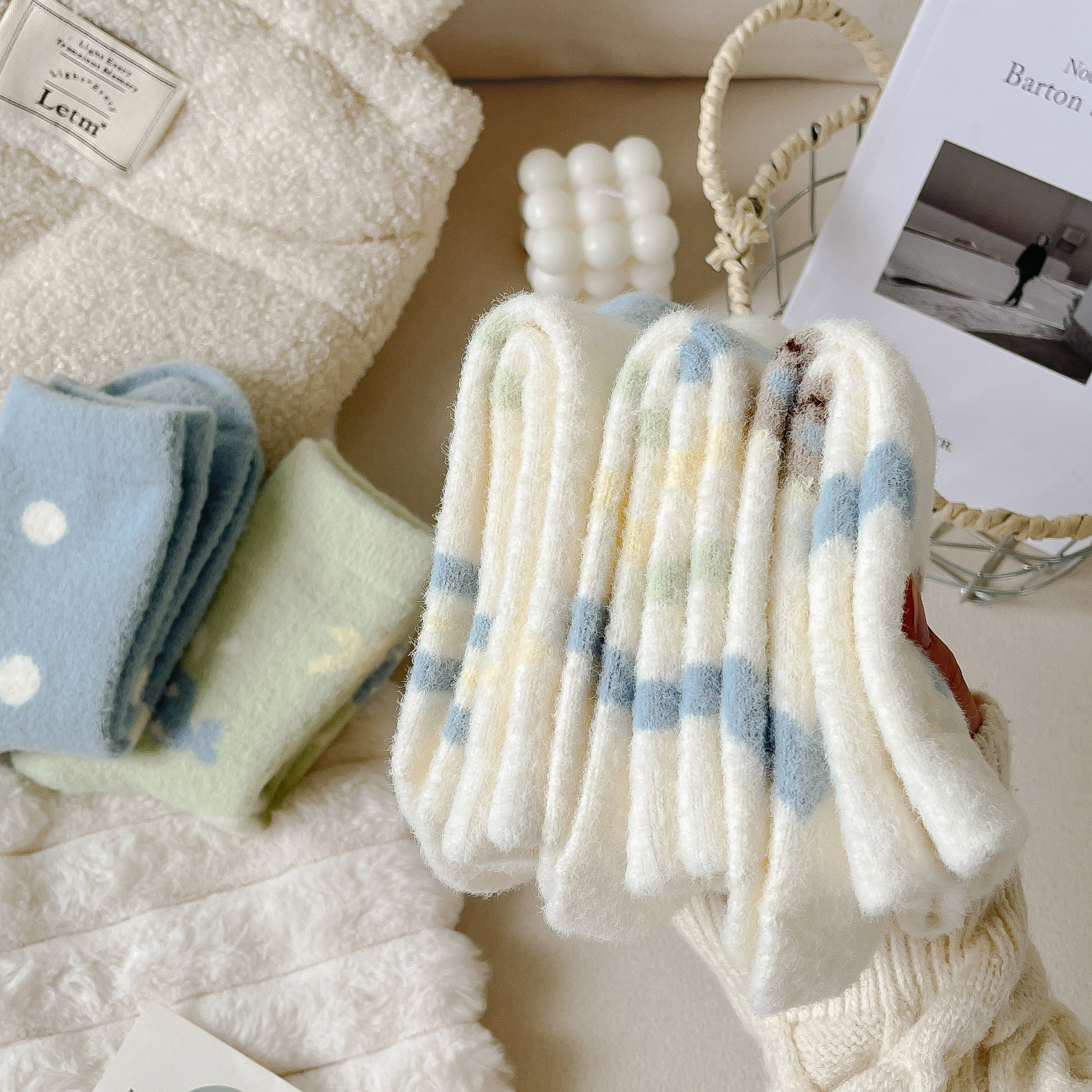 初品棉 批发澳绒袜子女ins条纹中筒袜加厚款秋冬季保暖居家睡眠袜