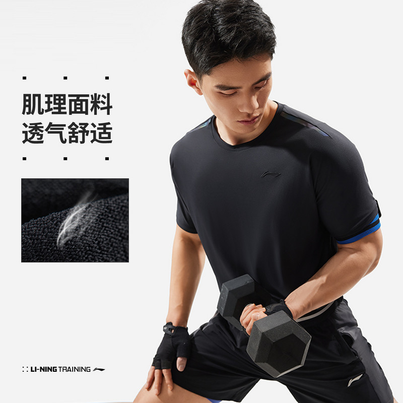 李宁短袖秋男子跑训系列时尚舒适透气百搭常规短袖T恤ATSU515-B品