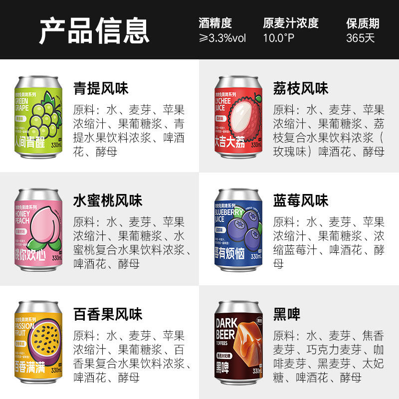 黑狸【啤啤兔】高颜值少女心果味啤酒330ml*6罐百香果水蜜桃风味