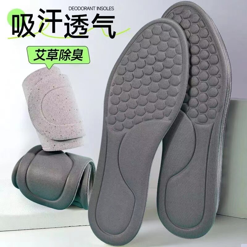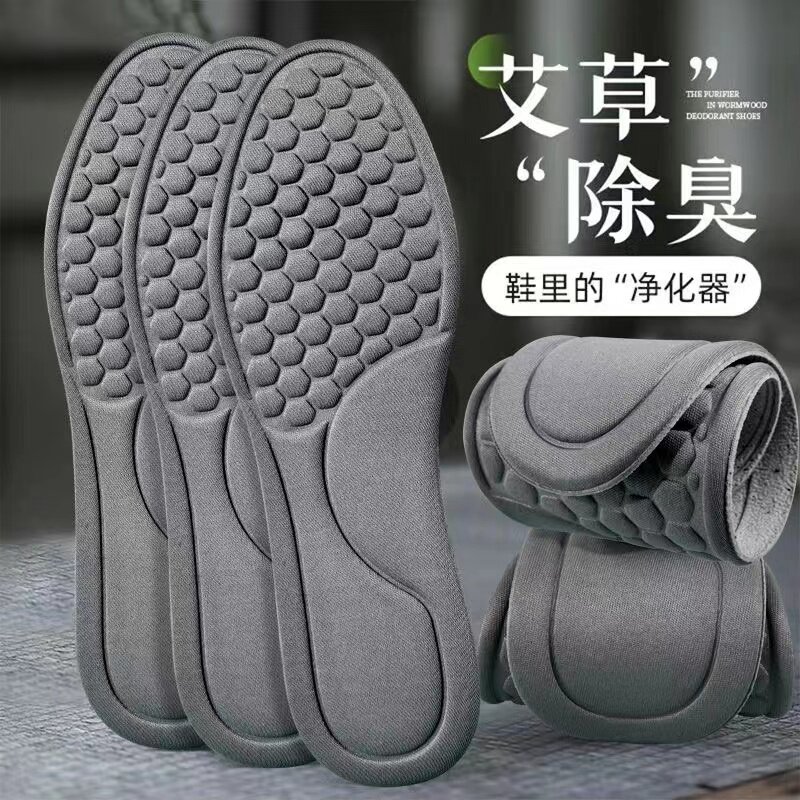 艾草除臭鞋垫按摩吸汗防臭透气软防臭鞋垫加厚款舒适男女鞋垫
