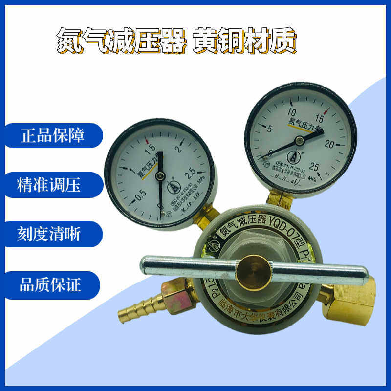 临海大华氮气减压器YQD-07消防灭火调压表黄铜减压器压力调节器