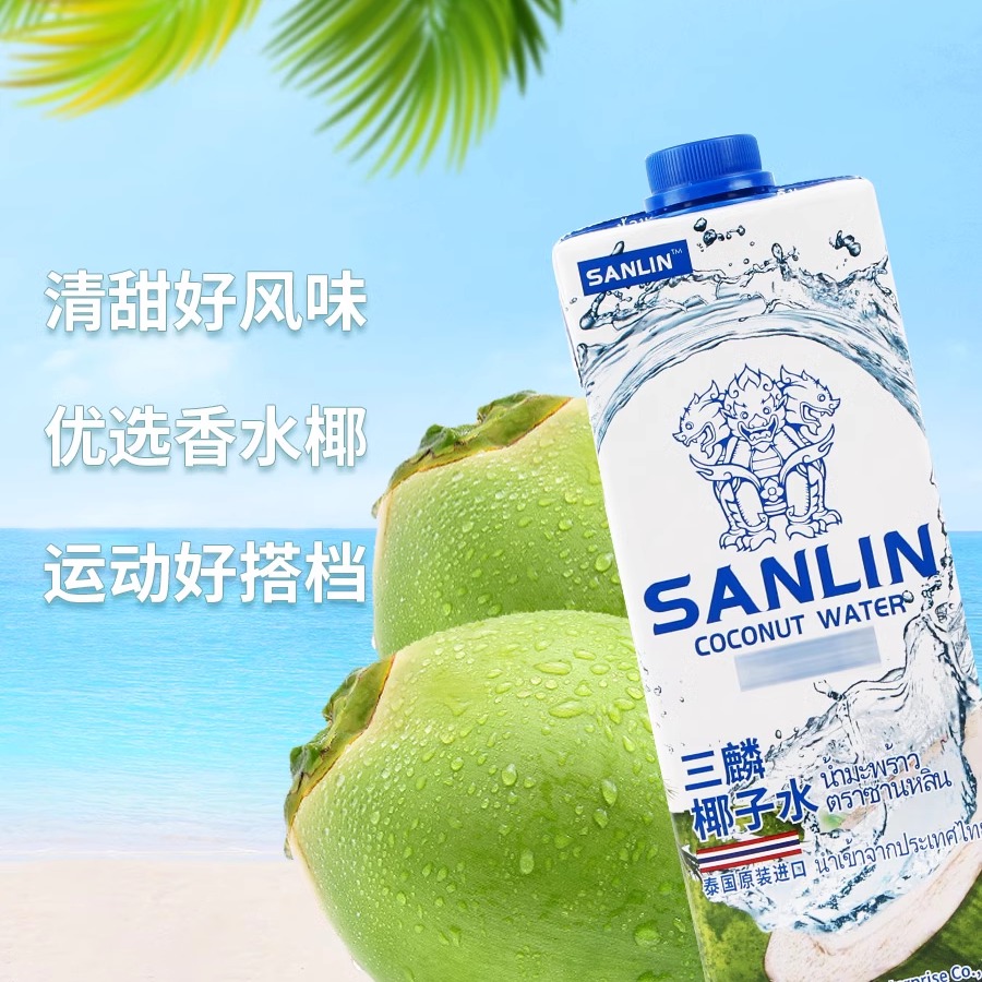 三麟100%纯椰子水1L*6瓶整箱椰汁