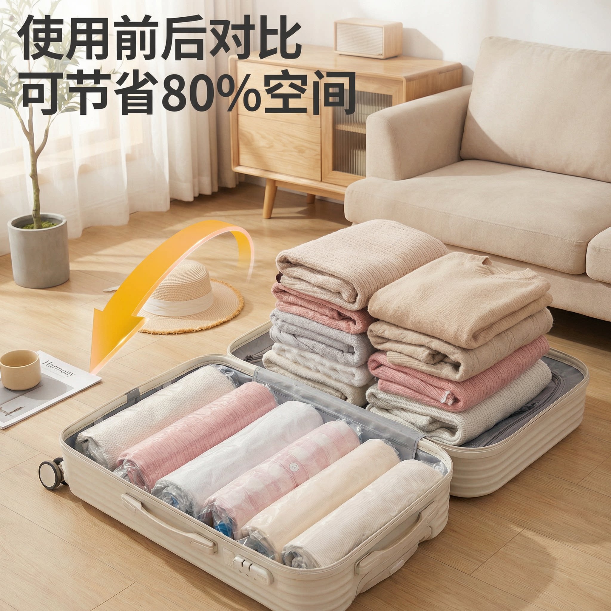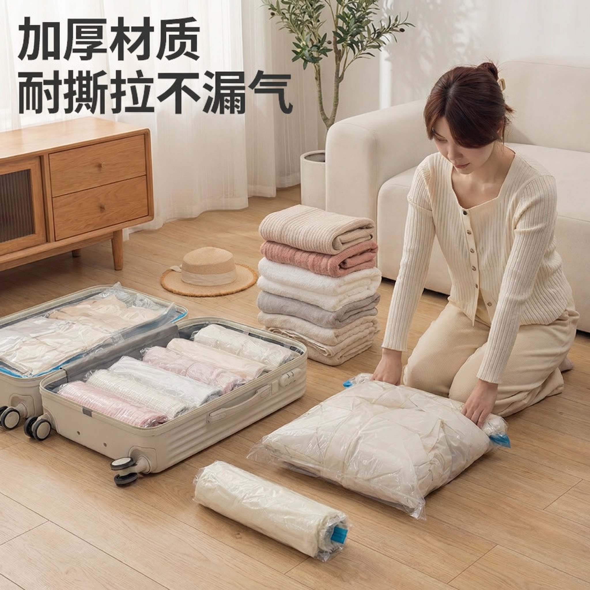 真空压缩袋行李箱专用收纳整理衣物免抽气便携手卷密封旅行打包袋