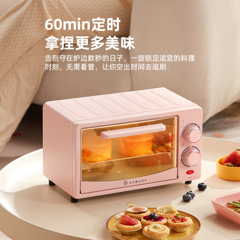 小贝猪电烤箱家用12L升小容量烤炉小型烧烤烘焙全自动迷你小烤箱