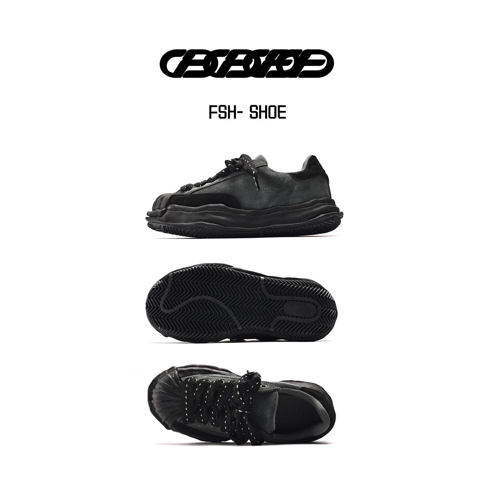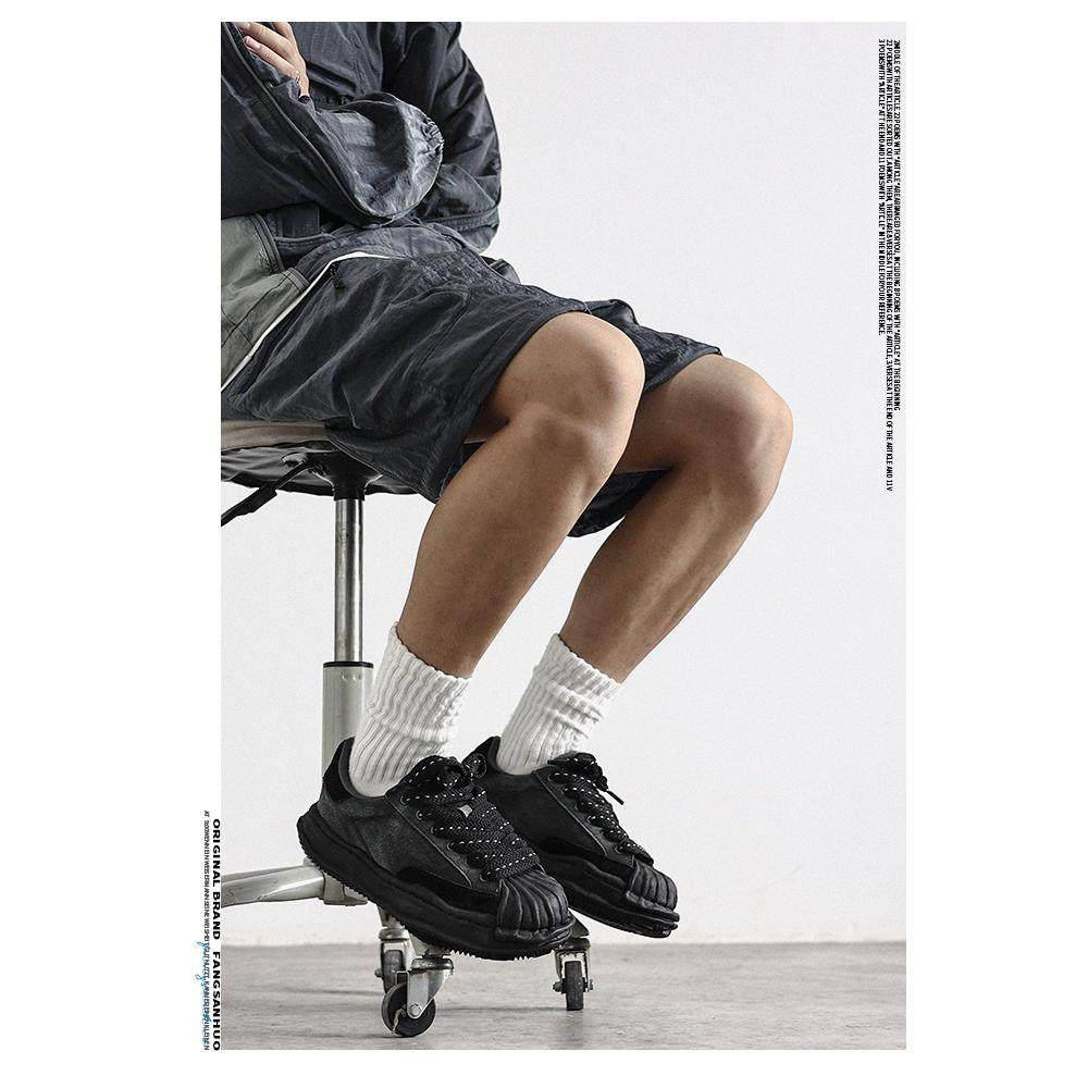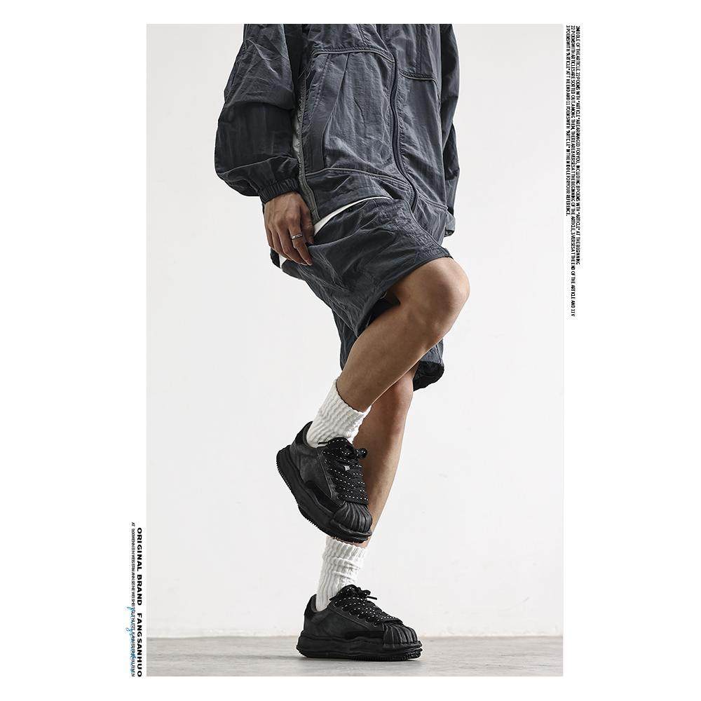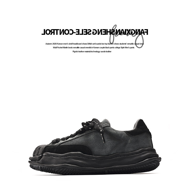 方三火 小众原创黑色ins复古反绒皮溶解鞋男厚底增高贝壳头板鞋男