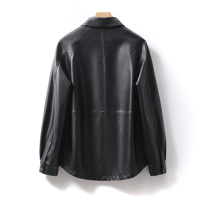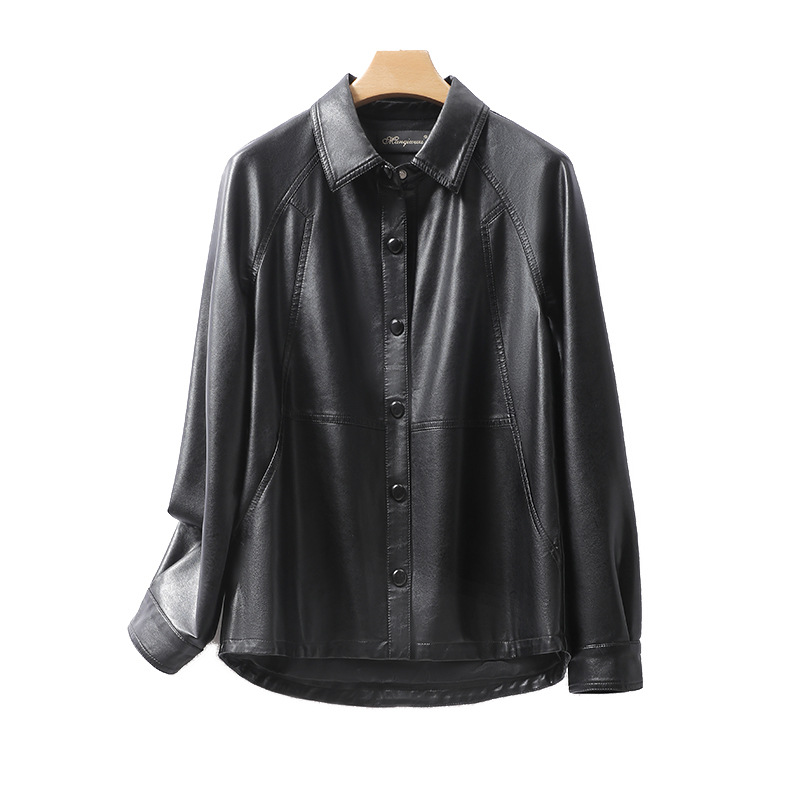 绵羊皮女外套短款翻领黑色显瘦海宁真皮单皮新款加大码女皮衣高级