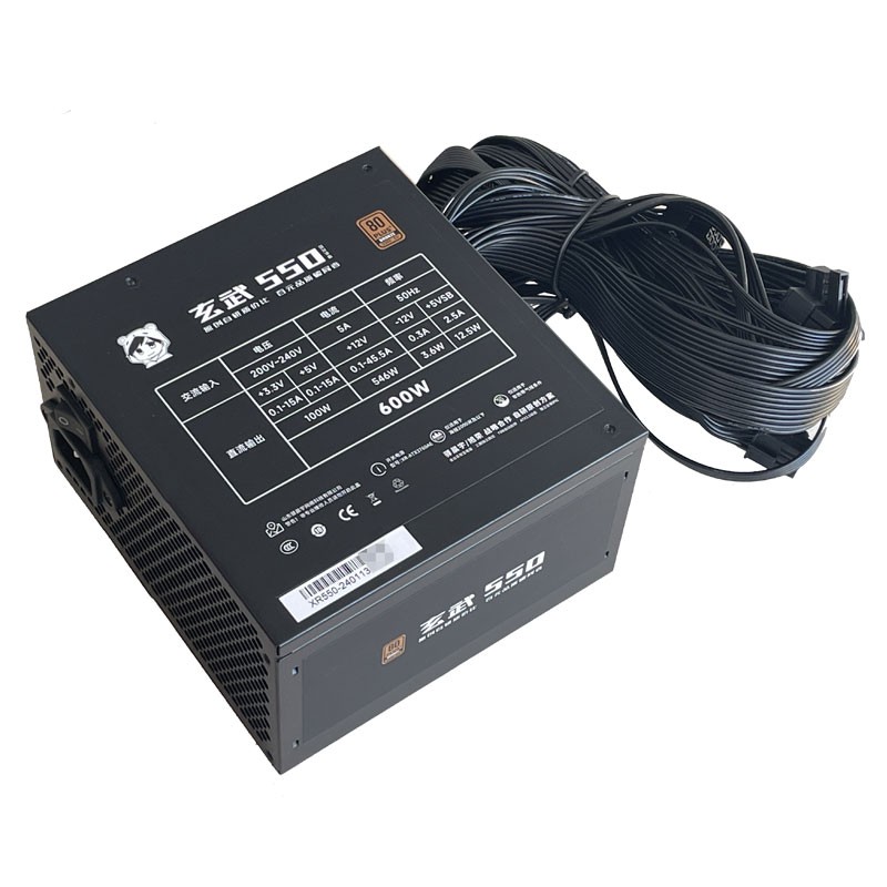 玄武550 v4电源额定600W铜牌台式机电脑12cm静音温控启停风扇ATX3