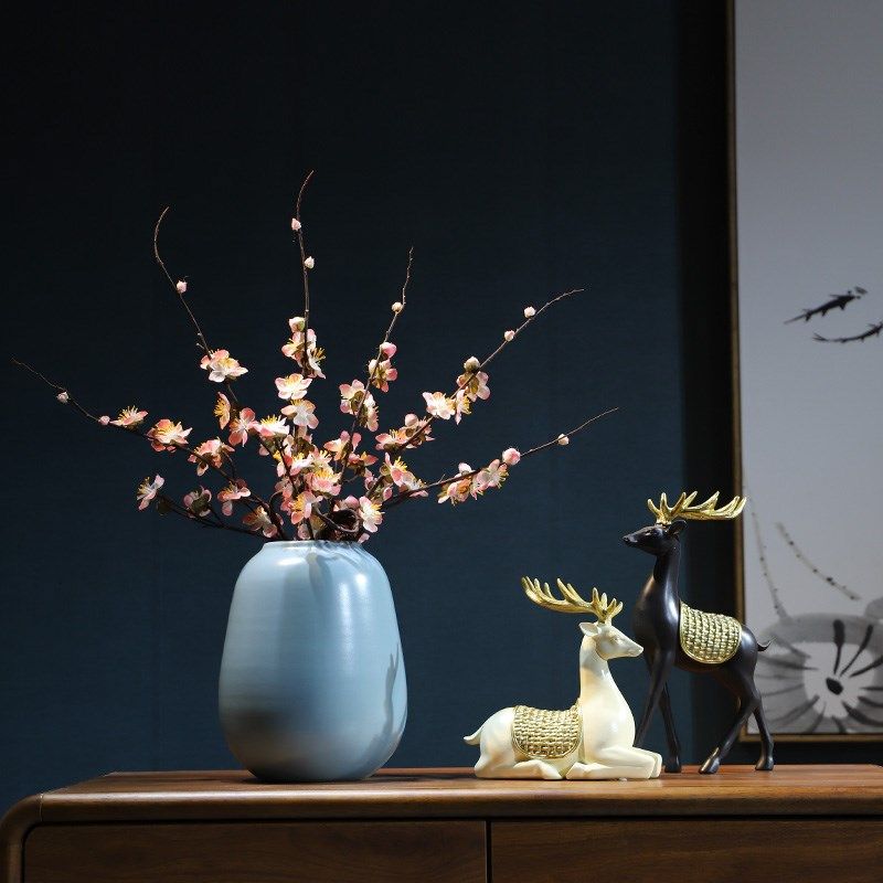 现代简约蓝色花瓶仿真花创意陶瓷水培插花电视柜餐桌家居装饰品