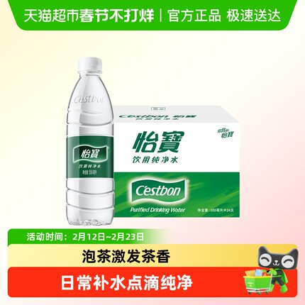 怡宝饮用水纯净水非矿泉水555ml*24瓶/箱整箱装