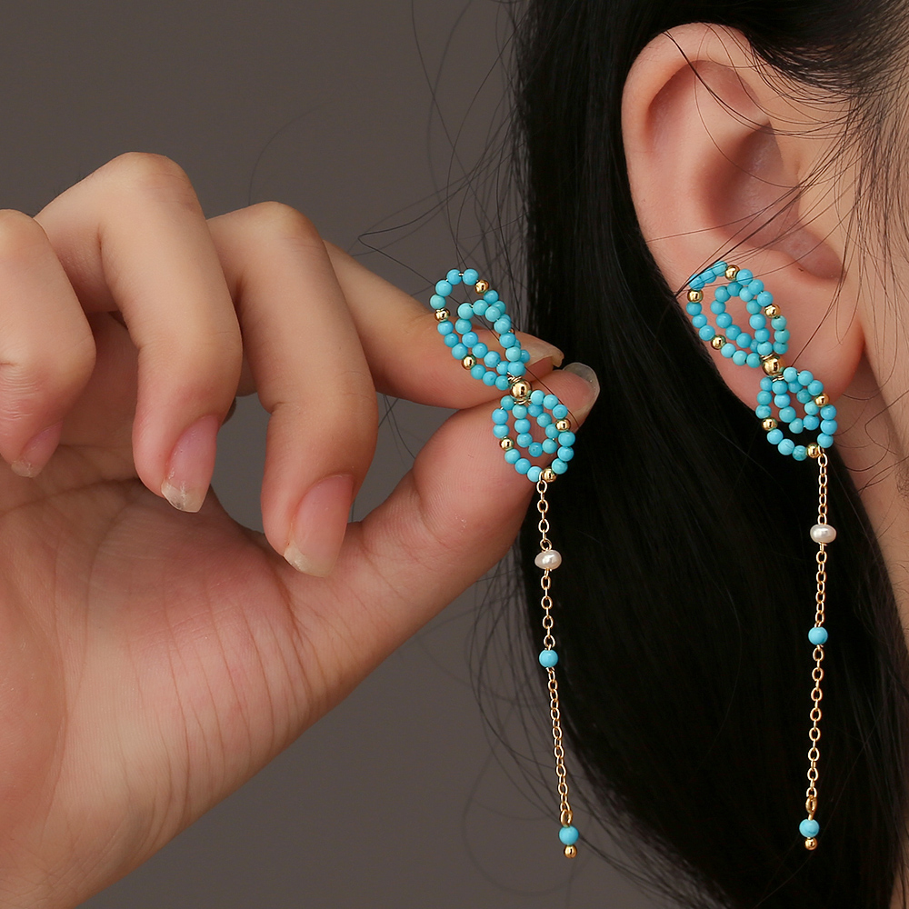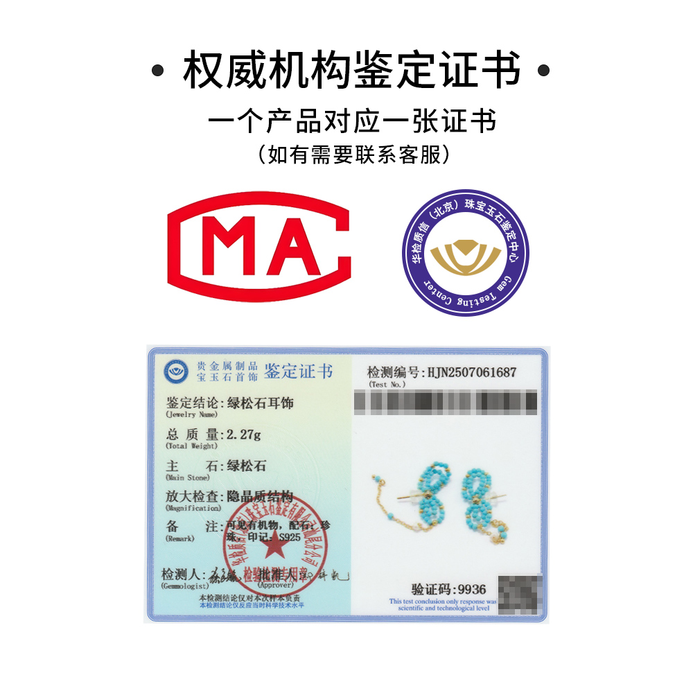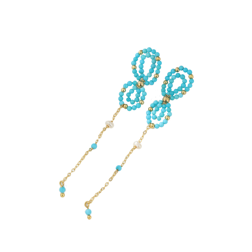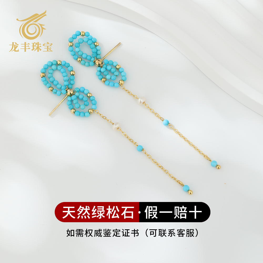 龙丰绿松轩S925银镀18k金正品天然绿松石小米珠蝴蝶耳钉女款高级