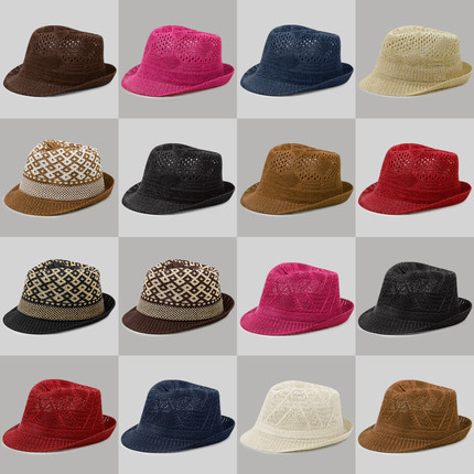 帽子男春夏季户外防晒礼帽英伦爵士帽遮阳透气镂空草帽女士沙滩帽