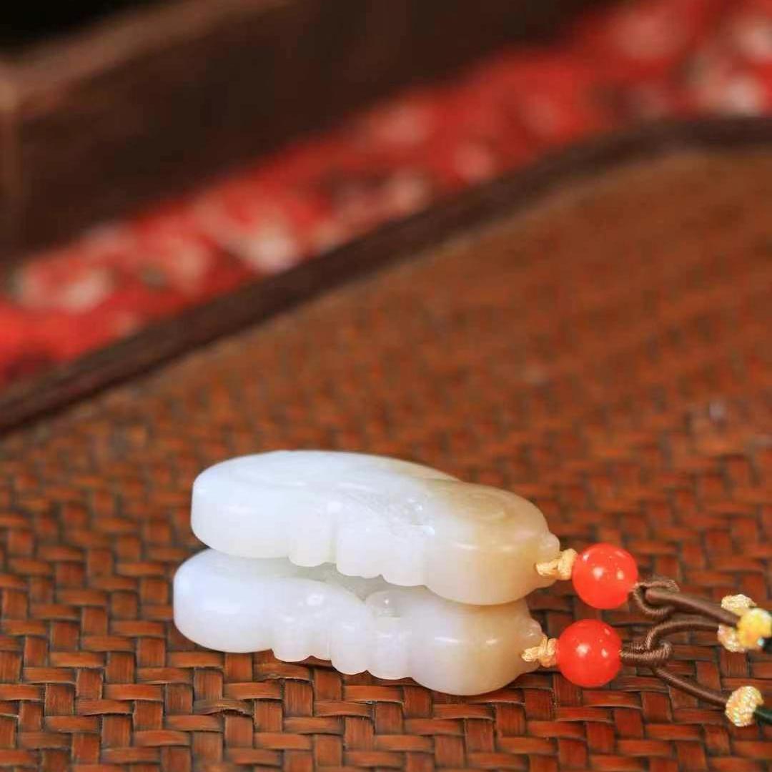 天然和田玉羊脂白玉龙凤对牌吊坠