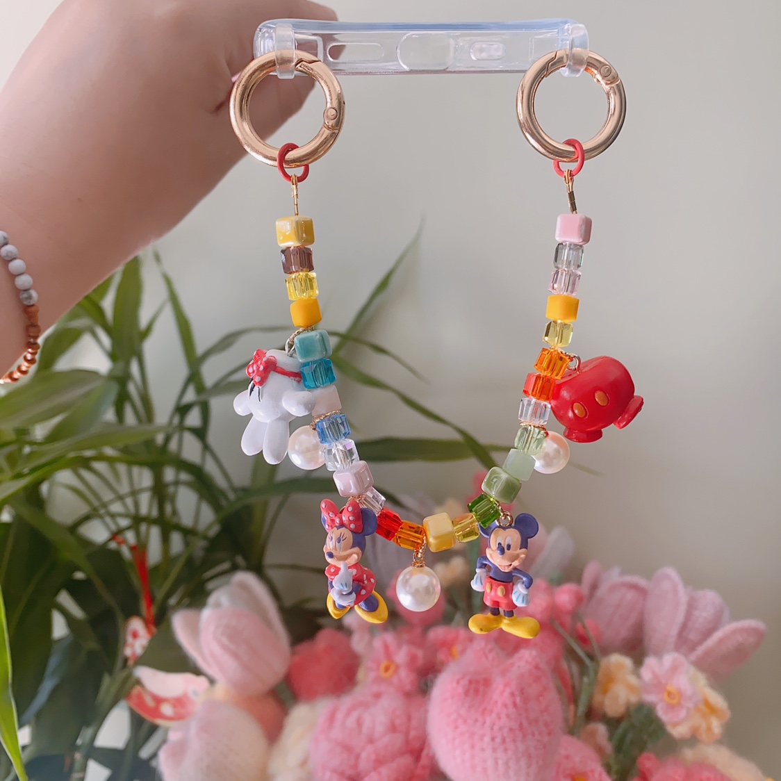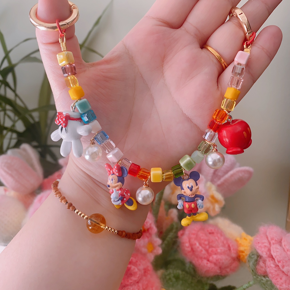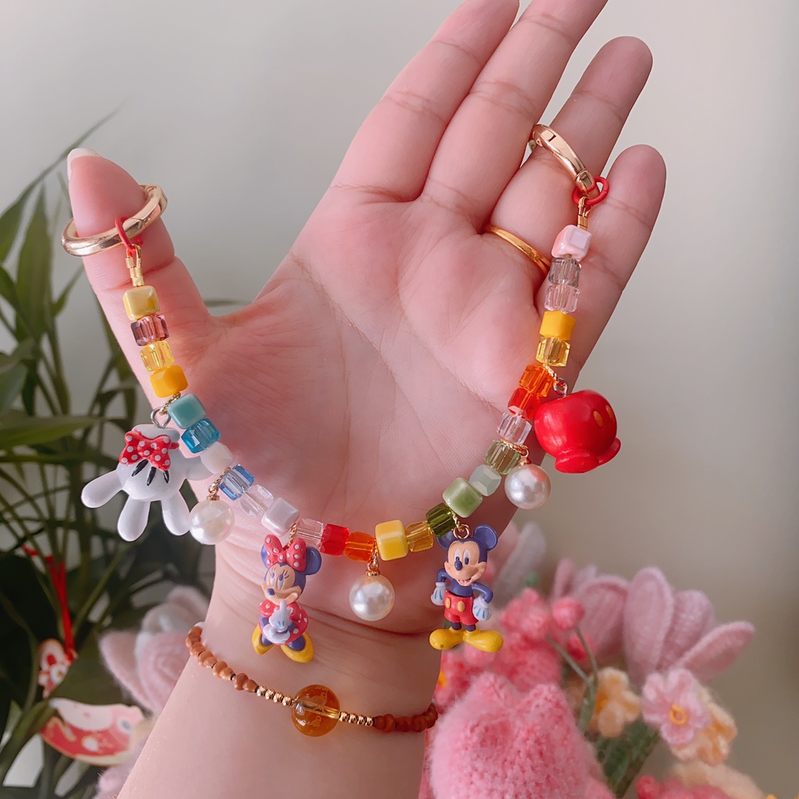 手工自制水晶串珠米奇米妮迪士尼卡通童趣可爱手机链包挂礼物