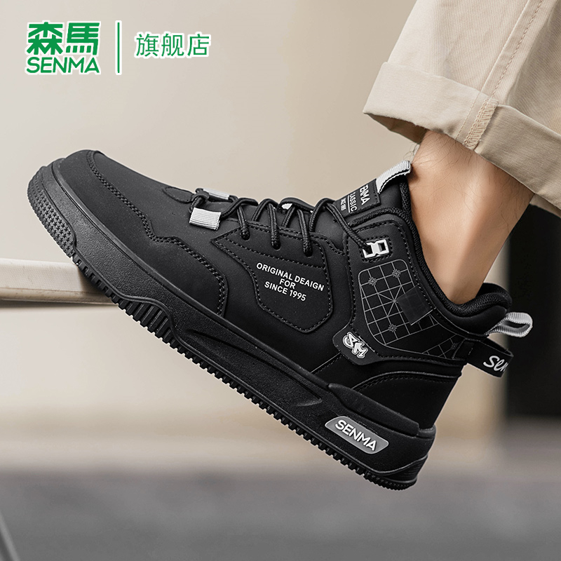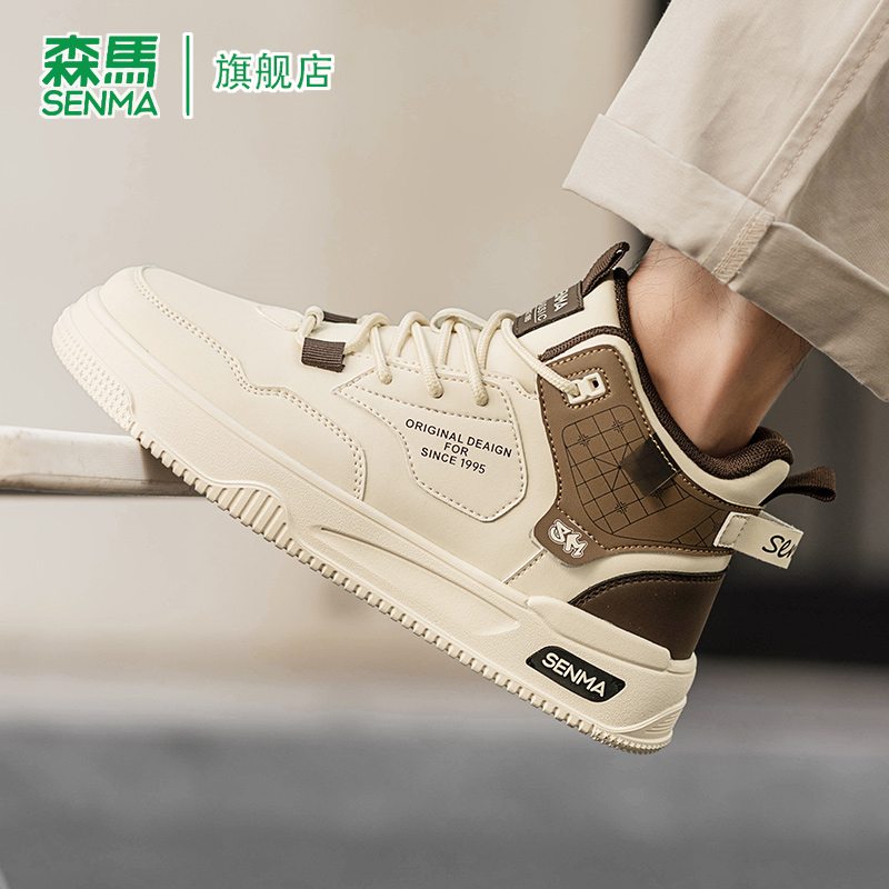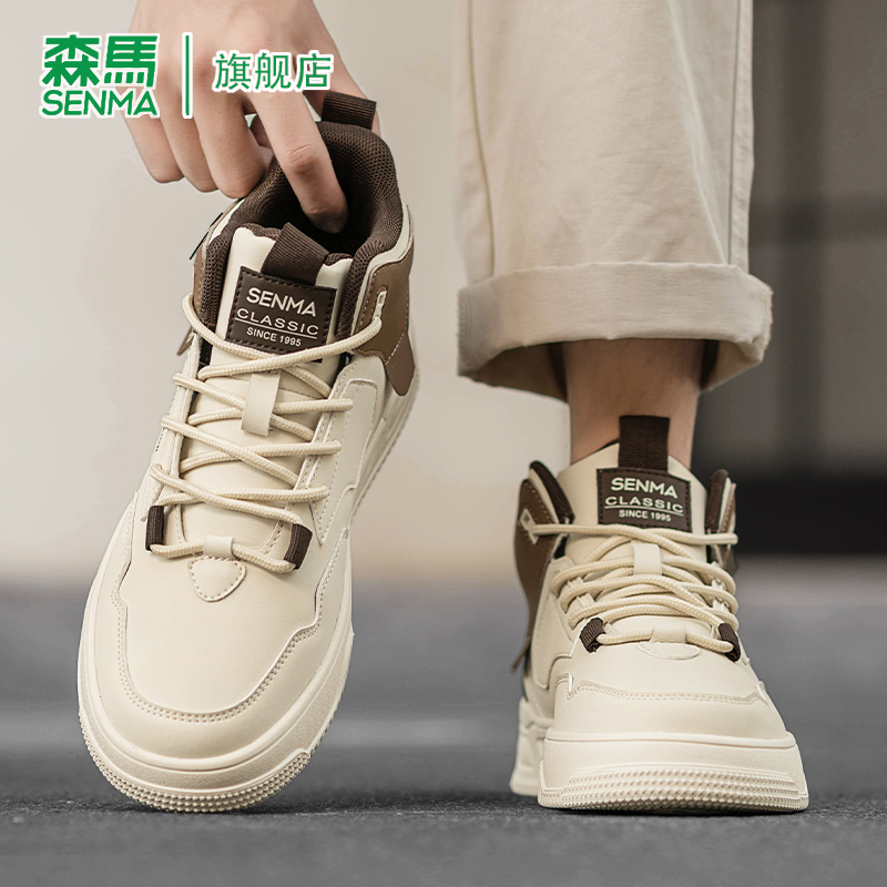 森马高帮鞋男款2025秋季潮流时尚小白鞋厚底增高百搭休闲运动板鞋