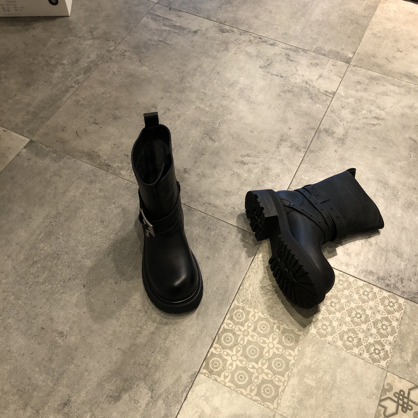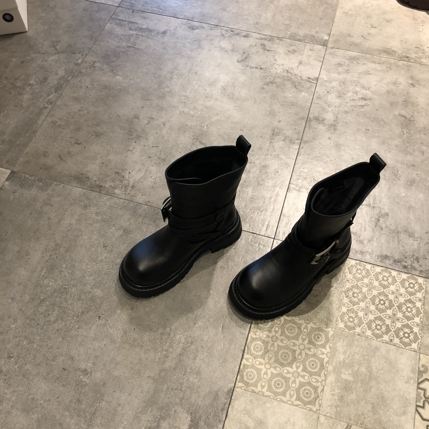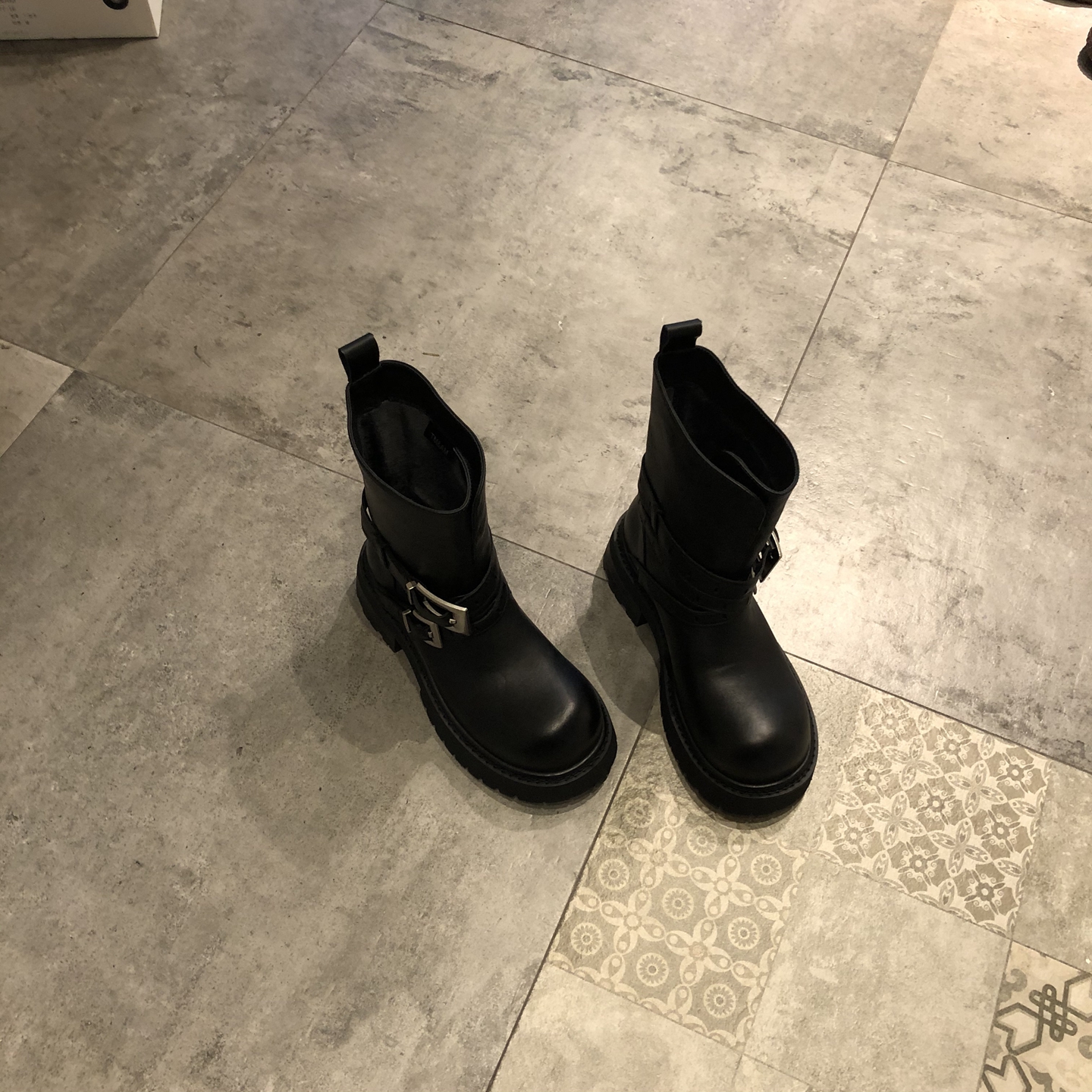 2025新款欧美时尚百搭厚底舒适靴子皮带扣轻便休闲骑士靴短靴女