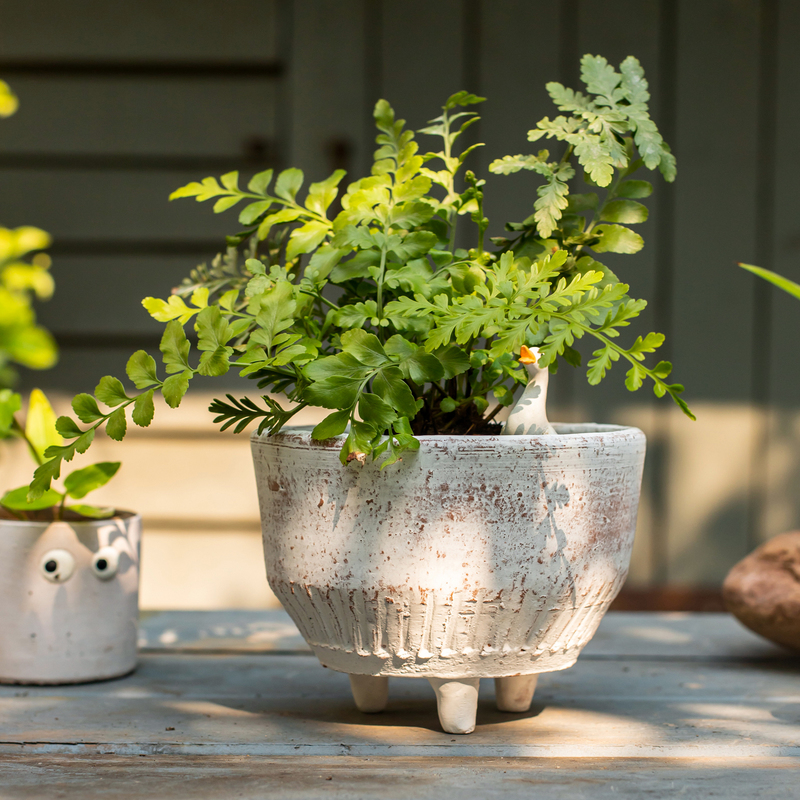 掬熙三脚陶瓷花盆多肉绿植盆家用大口径花器创意插花粗陶透气做旧