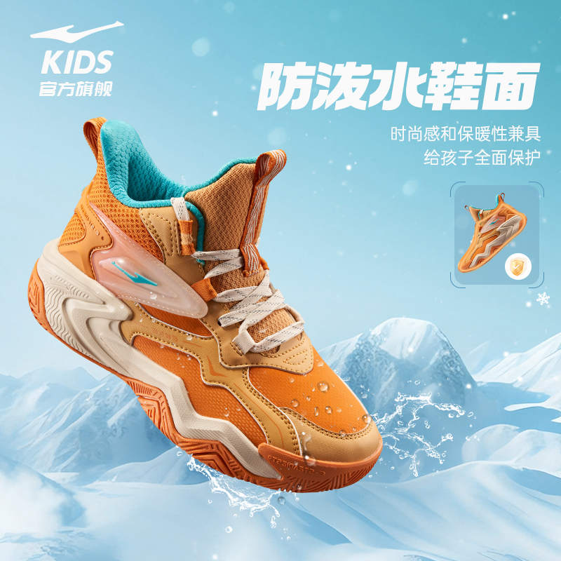 奇袭鸿星尔克童鞋儿童运动鞋男童秋冬青少年革面防泼水实战篮球鞋
