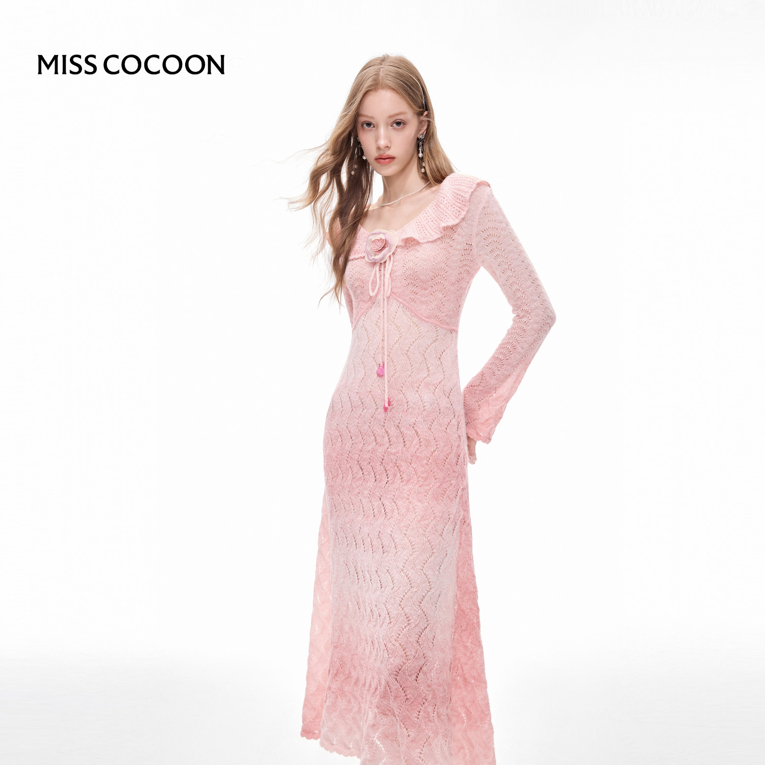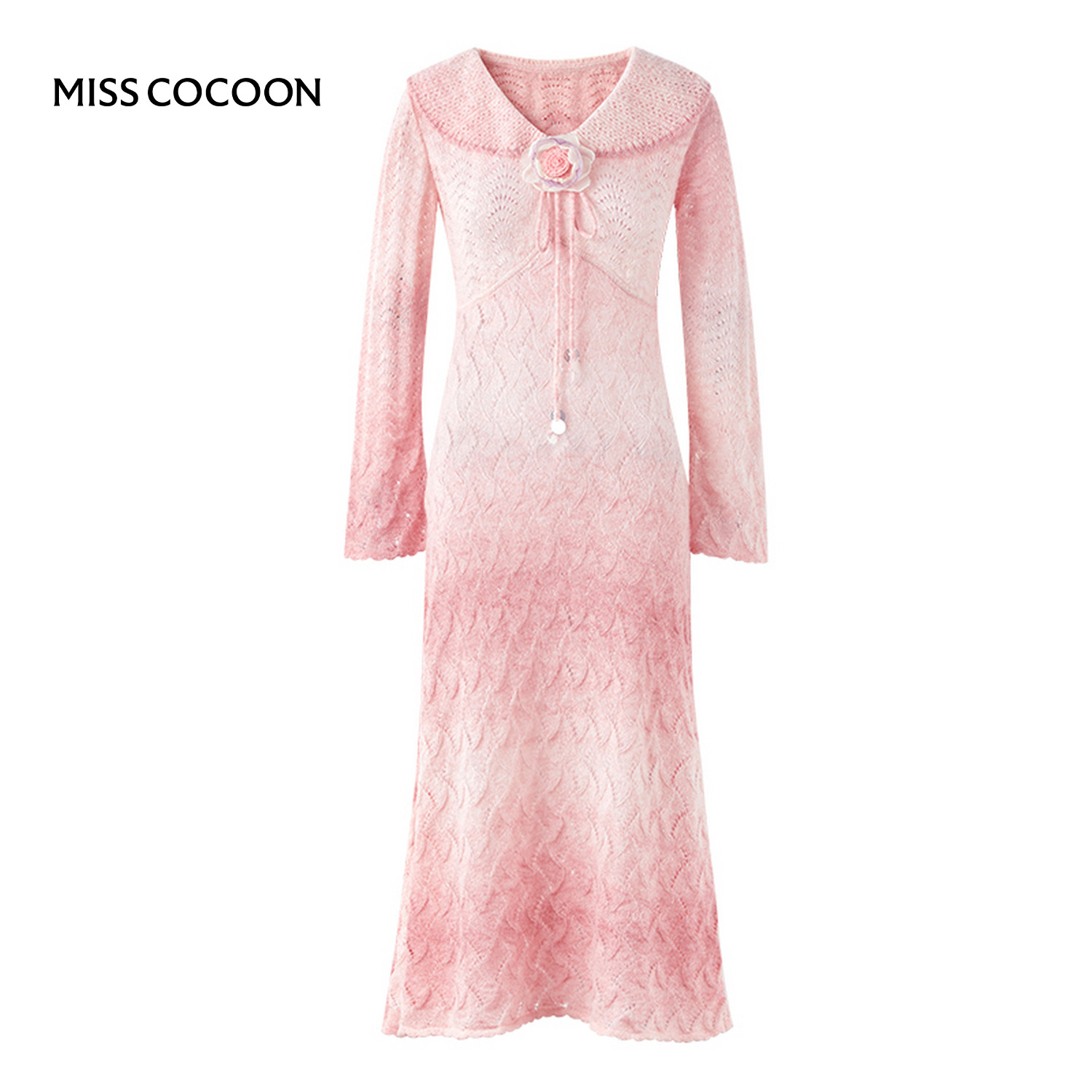 MISSCOCOON可可尼渐变色裙子女2025秋季新款收腰绵羊毛针织连衣裙