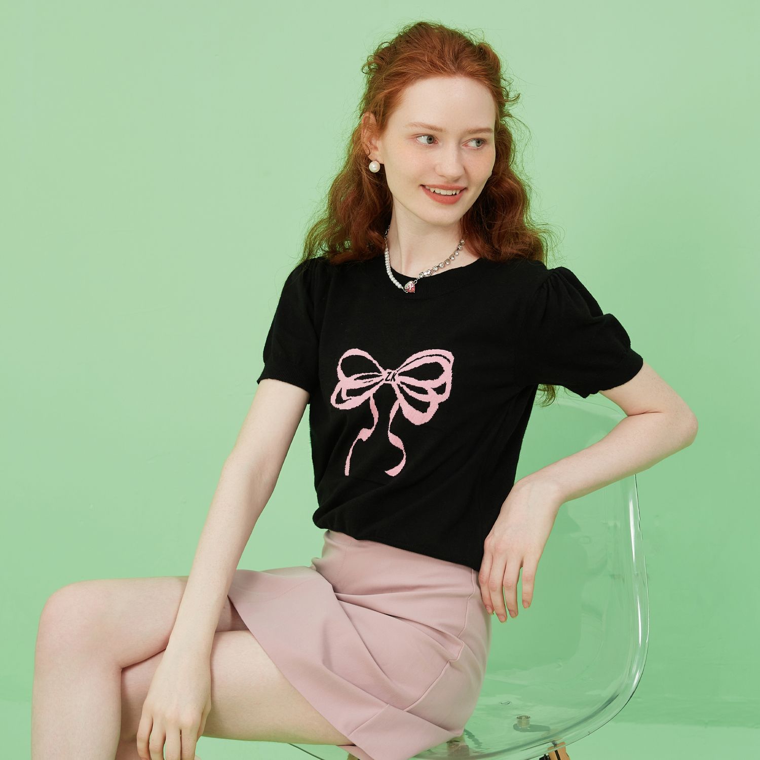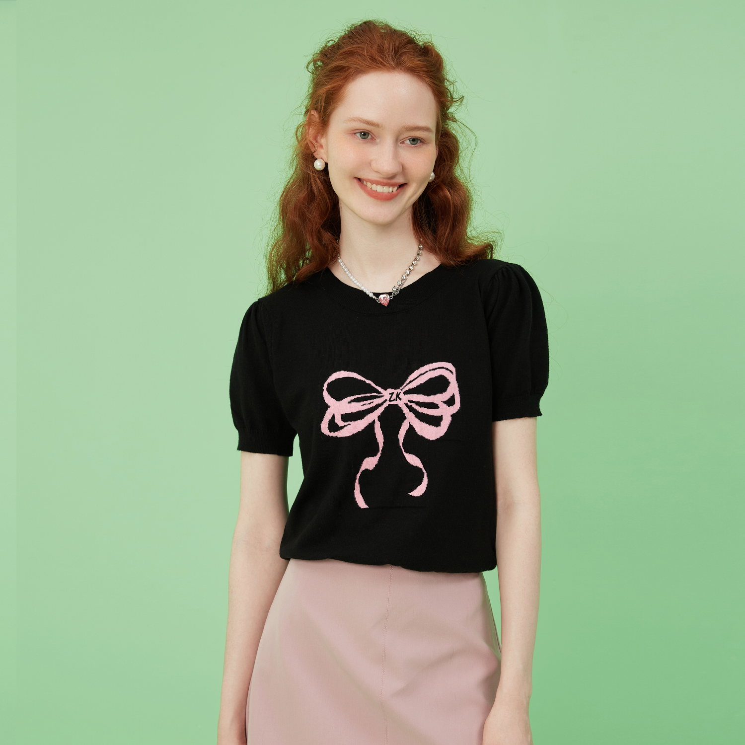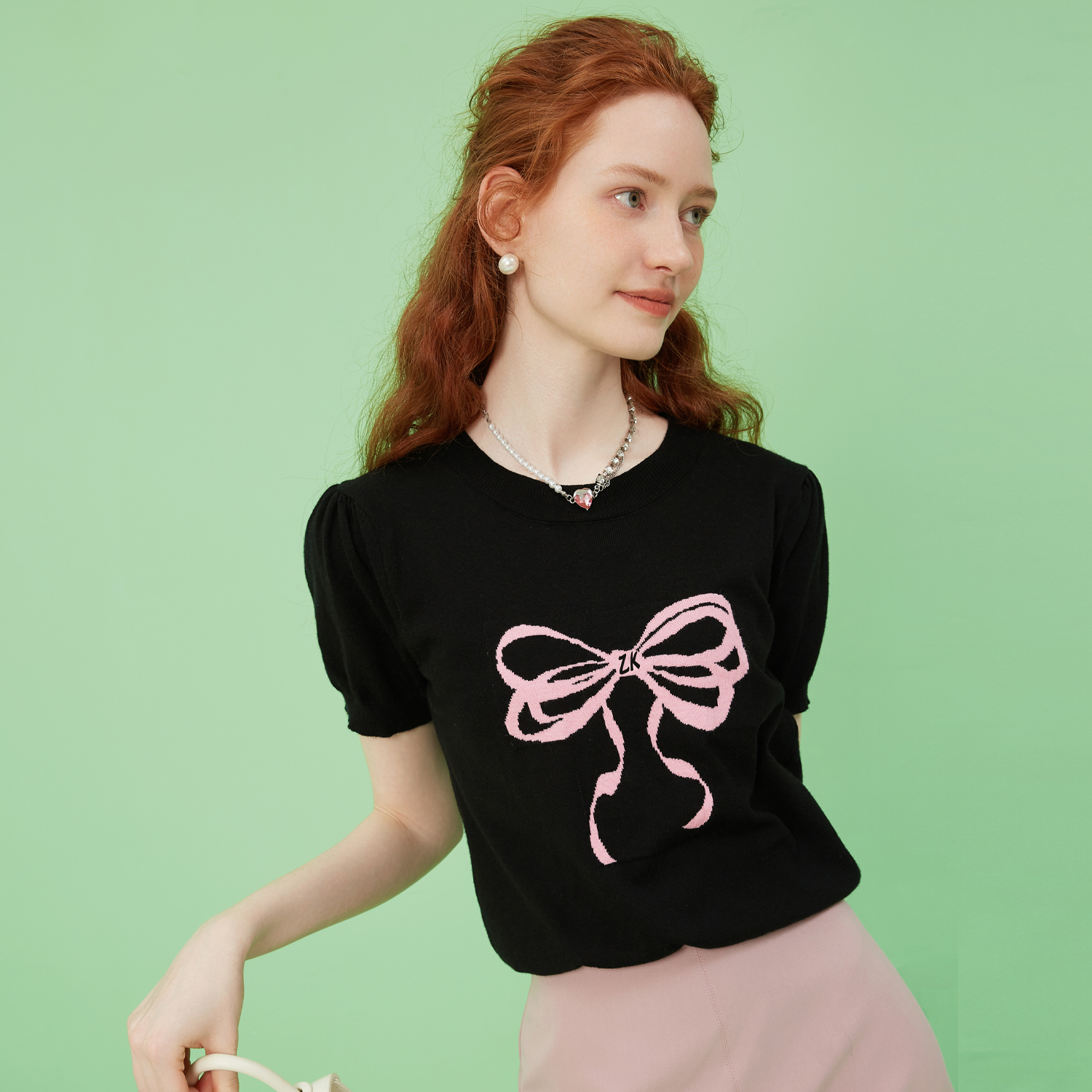 zklin蝴蝶结泡泡袖甜酷t恤女夏短袖t恤女2025新款设计感上衣洋气