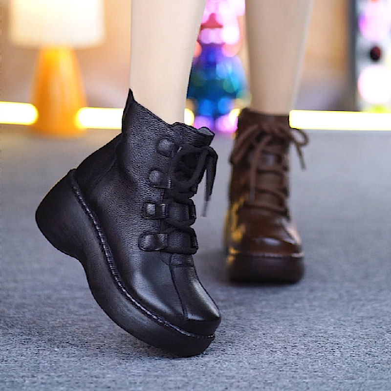 纯牛皮民族风厚底马丁靴