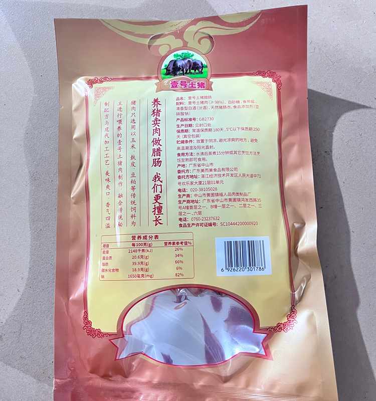 壹号土广式腊肠三七腊味广东腊肠