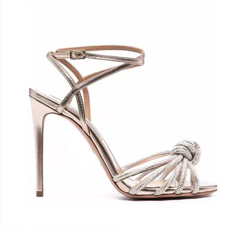 AIYOUXUAN细跟凉鞋水钻羊皮露趾