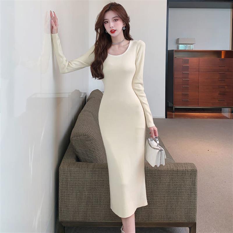 御姐风法式气质收腰内搭打底长裙修身包臀针织连衣裙秋冬2022新款