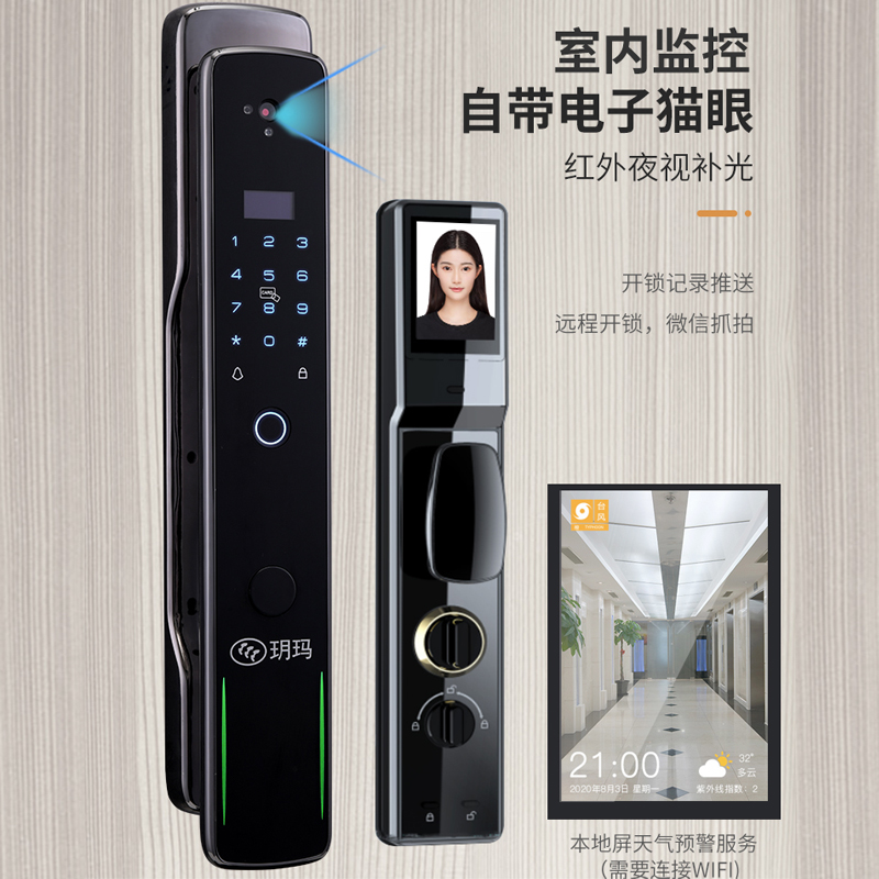 玥玛全自动智能锁指纹锁带监控家用防盗门密码电子锁远程开锁A7A