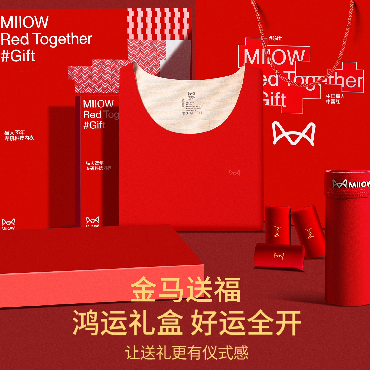 猫人无痕本命年内衣套装女马年