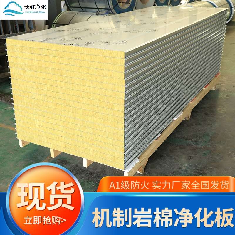 岩棉板防火净化板夹芯板泡沫彩钢板活动板房围挡隔墙洁净保温隔热