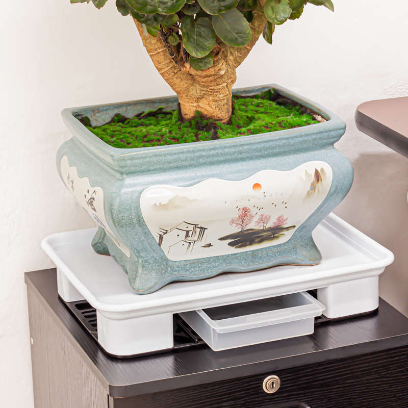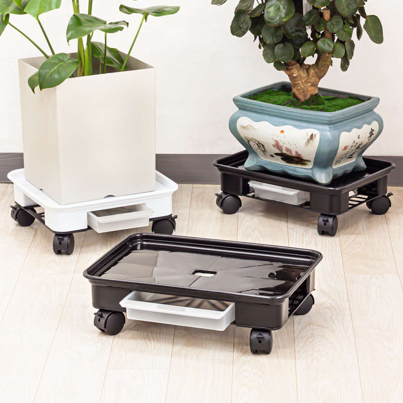 长方形花盆托盘万向轮可移动底盘垫底座塑料树脂接水盘带滚轮滑轮